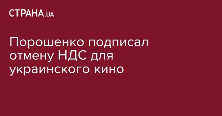 Президент Украины Петр Порошенко подписал об отмене налога на добавленную стоимость (НДС) для украинских кинопроизводителей. Другой подписанный им закон предусматривает отмену таможенных пошлин на ввоз кинопродукции в Украину.