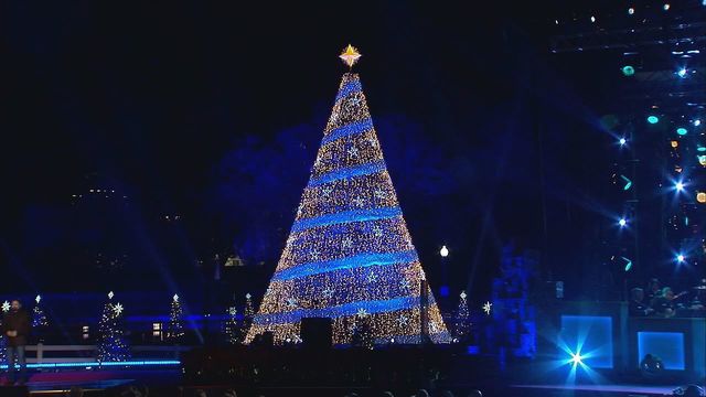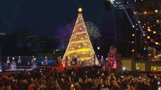 Президент США не стал говорить длинную речь, а начал обратный отсчет, посчитал от 10 до 1, и на елке загорелись разноцветные огни. После этого начался концерт.