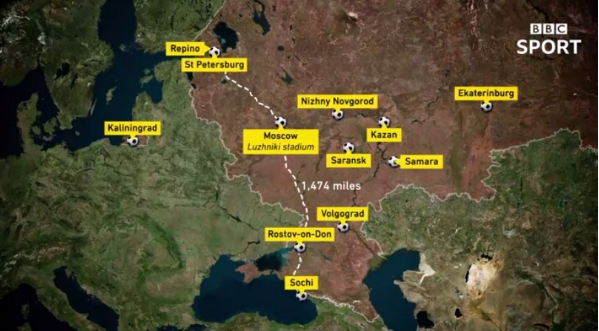 Телерадиокомпания BBC обнародовала ролик с анонсом городов ЧМ-2018 с картой, на которой Крым обозначен, как территория России.