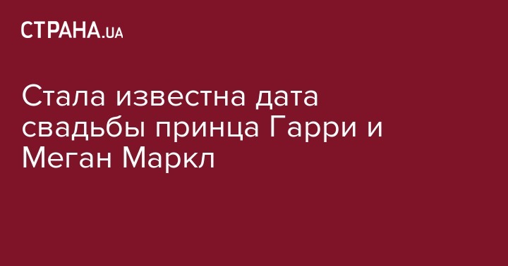 Стала известна точная дата свадьбы принца Гарри и американской актрисы Меган Маркл. Они поженятся в субботу, 26 мая 2018 года, сообщает The Sun.