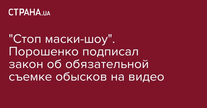 Петр Порошенко подписал закон, ограничивающий давление силовиков на бизнес через обыски и "маски-шоу". Закон обязывает силовиков проводить видеофиксацию своих действий. Порошенко подписал закон на диалоге бизнеса и власти в пятницу в Киеве, передает "Интерфакс-Украина".