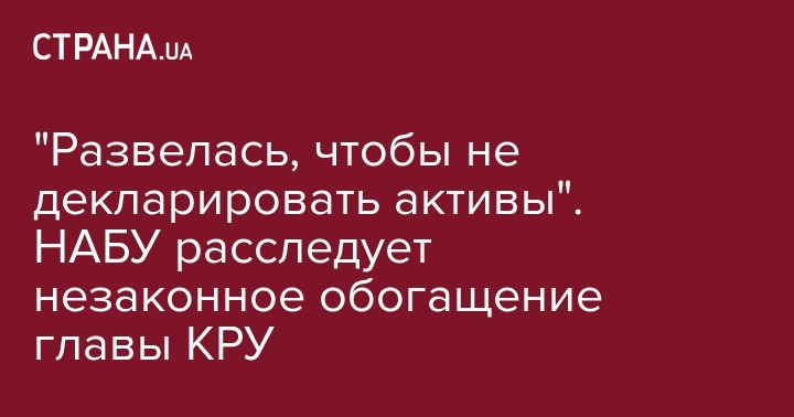 "Развелась, чтобы не декларировать активы". НАБУ расследует незаконное обогащение главы КРУ