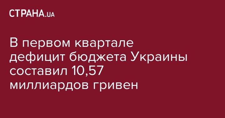 В первом квартале 2016 года дефицит государственного бюджета Украины составил 10,57 млрд грн, свидетельствуют данные Министерства финансов.