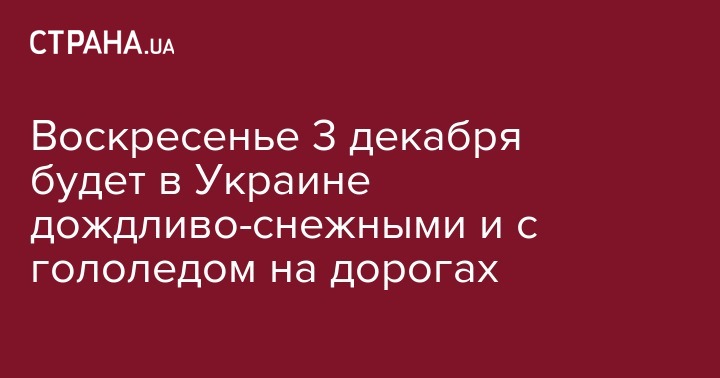 Воскресенье 3 декабря будет в Украине дождливо-снежными и с гололедом на дорогах