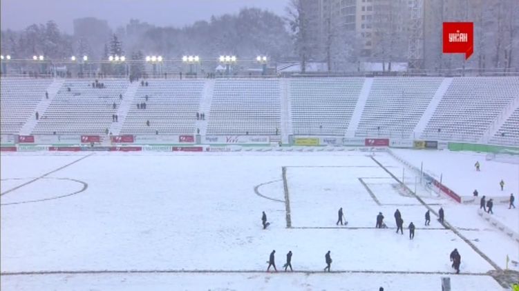 Однако после перерыва арбитр матча Катерина Монзуль решила не возобновлять игру – поле было полностью покрыто большим слоем снега, который не спешили убирать.