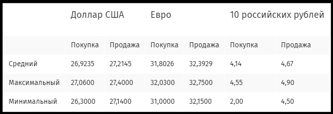 Курсы наличной иностранной валюты: