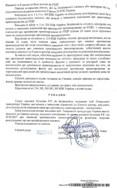 Бывший первый заместитель генерального прокурора Украины Ренат Кузьмин заявил, что Печерский суд Киева обязал ГПУ расследовать преступление секретаря СНБО Александра Турчинова против свободы слова. Об этом он написал в Facebook.