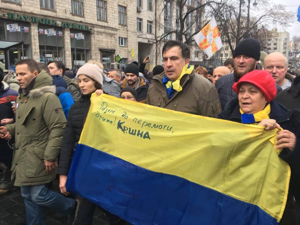 Сейчас колонна сторонников Михо идет к Верховной Раде.