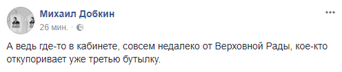 Политик Михаил Добкин: "А ведь где-то в кабинете, совсем недалеко от Верховной Рады, кое-кто откупоривает уже третью бутылку".