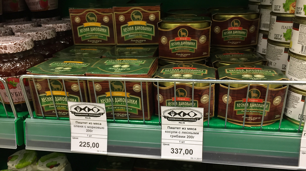Дешевле обычного лишь некоторые позиции, например, тушенка из оленя.
