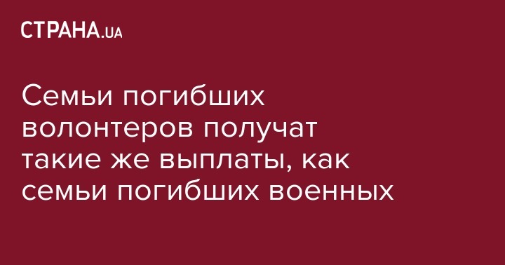 "На сегодняшний день не был выработан порядок выплаты денег семьям погибших волонтеров... Мы подготовили проект решения , который устанавливает размер выплат на уровне погибших военных", - сказал министр социальной политики Андрей Рева. По его словам, проект постановления был разработан по итогам встречи на организационном комитете с ветеранскими организациями.
