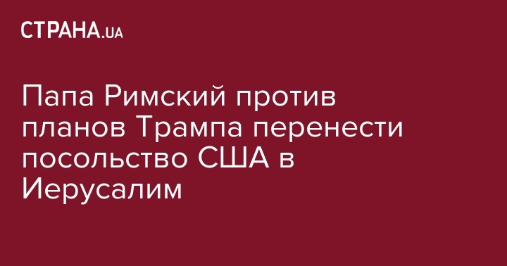Папа Римский Франциск выступил против переноса американского посольства в Израиле из Тель-Авива в Иерусалим.