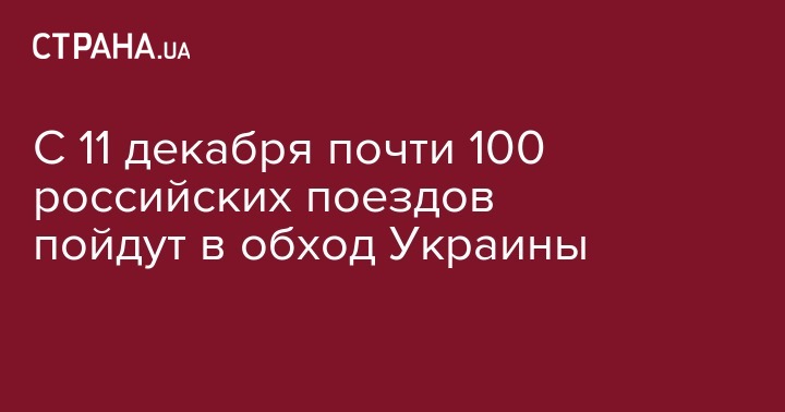 С 11 декабря почти 100 российских поездов пойдут в обход Украины