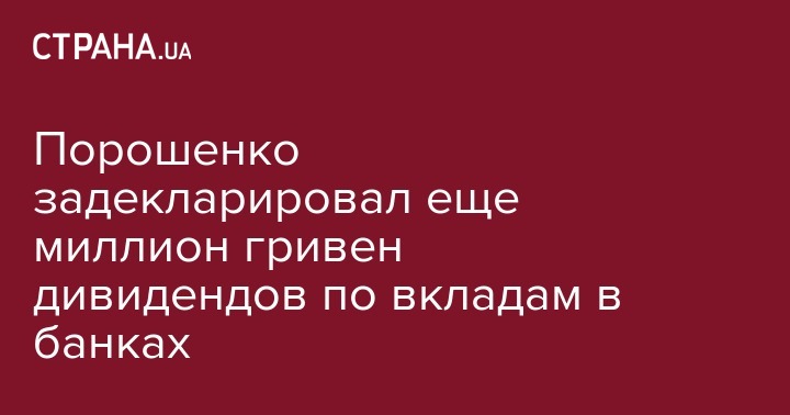 Порошенко задекларировал еще миллион гривен дивидендов по вкладам в банках