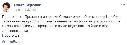 На публикацию Ольги Березюк отреагировала руководитель пресс-службы Львовского горсовета Кристина Процак. "Светофоры выключили не по указке мэрии, улицы регулировали также", - написала она, комментируя сообщение Березюк.