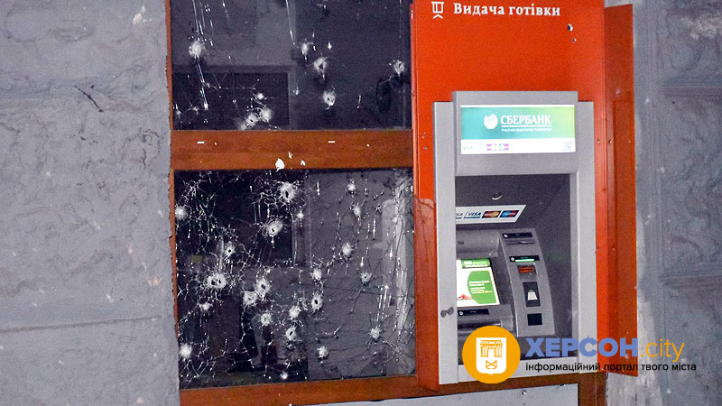 В центре Херсона поздно вечером 6 декабря неизвестными лицами был взорван банкомат "Сбербанка России" около здания банка.