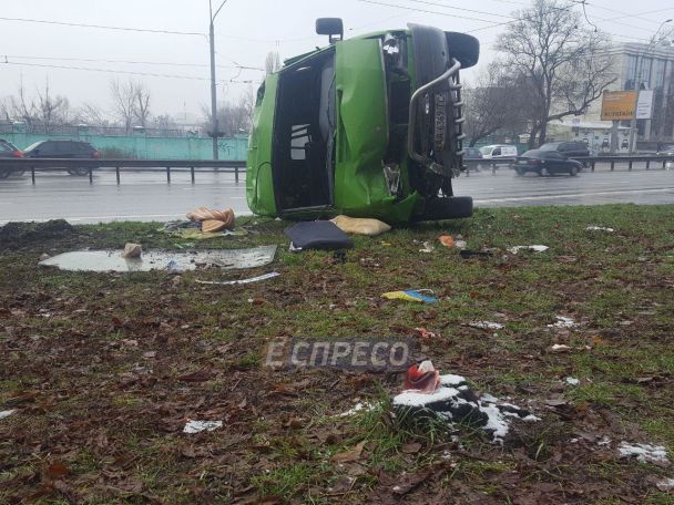 В Киеве на Шулявке автобус "телевидение" попал в ДТП и перевернулся