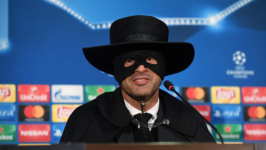 Главный тренер "горняков" Паулу Фонсека сдержал слово и пришел на послематчевую пресс-конференцию в костюме Зорро.
