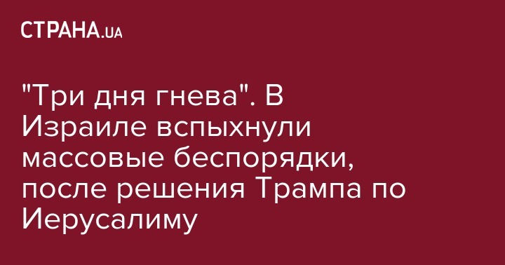 "Три дня гнева". В Израиле вспыхнули массовые беспорядки, после решения Трампа по Иерусалиму