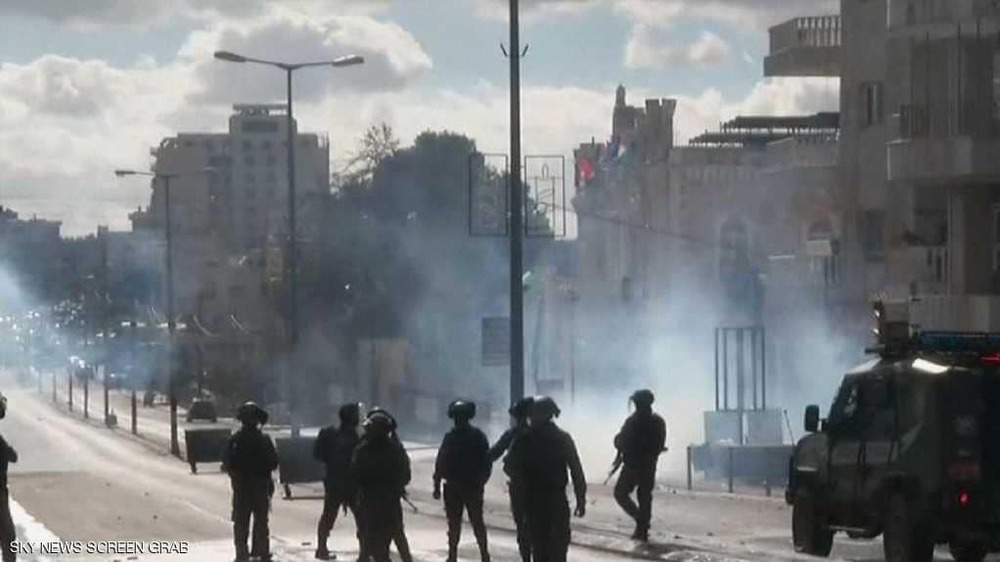 Палестинцы в Вифлееме также вышли на улицы, чтобы выразить протест против решения президента США. На Западном берегу реки Иордан начались столкновения между палестинцами и израильскими военнослужащими.