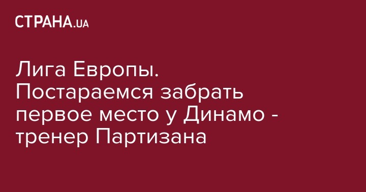 Лига Европы. Постараемся забрать первое место у Динамо - тренер Партизана