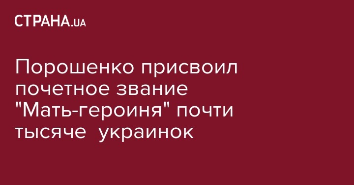 Президент Украины Петр Порошенко подписал указ № 409 "О присвоении почетного звания "Мать-героиня" 956 украинкам.