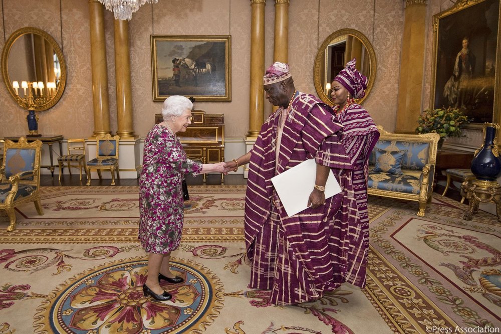 "Идеальная координация стилей". Елизавета II выбрала пестрый наряд в унисон нигерийскому послу