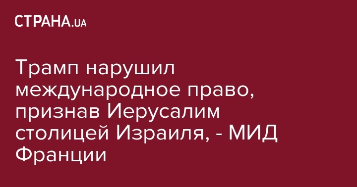 По словам министра иностранных дел Франции Жан-Ива Ле Дриана, решение президента США Дональда Трампа о признании Иерусалима столицей Израиля и переносе туда американского посольства противоречит международному праву и консенсусу, передает France Inter.