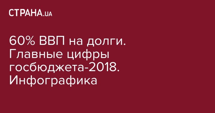 60% ВВП на долги. Главные цифры госбюджета-2018. Инфографика