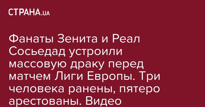 Фанаты Зенита и Реал Сосьедад устроили массовую драку перед матчем Лиги Европы. Три человека ранены, пятеро арестованы. Видео