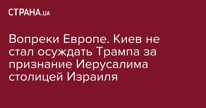 Вопреки Европе. Киев не стал осуждать Трампа за признание Иерусалима столицей Израиля