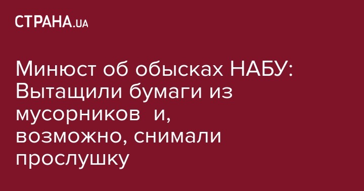 Первый заместитель министра юстиции Наталья Бернацкая, комментируя сегодняшний обыск а Минюсте, заявила, что детективы НАБУ вынимали бумаги из мусорных корзин, возможно, снимали установленные ими ранее средства прослушивания.