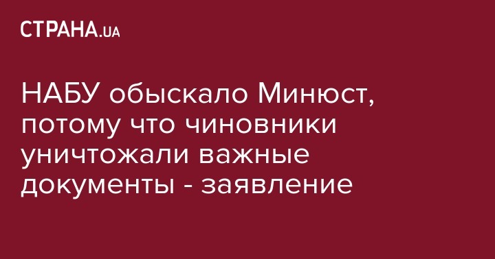 НАБУ обыскало Минюст, потому что чиновники уничтожали важные документы - заявление