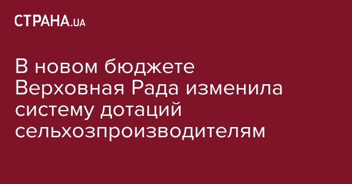 В новом бюджете Верховная Рада изменила систему дотаций сельхозпроизводителям