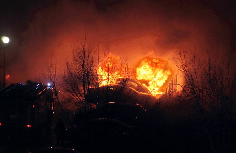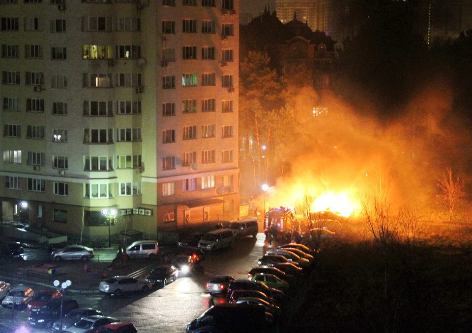 Сегодня ночью в Броварах под Киевом неизвестные подожгли припаркованные во дворе жилого дома машины, закидав их бутылками с "коктейлями Молотова".