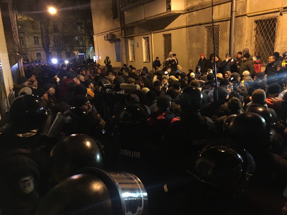 12.14 -  Несколько десятков сторонников задержанного Михаила Саакашвили перекрыли улицу возле изолятора временного содержания в Аскольдовом переулке Киева, где содержится лидер Руха новых сил, и проводят акцию протеста, сообщает ТАСС.