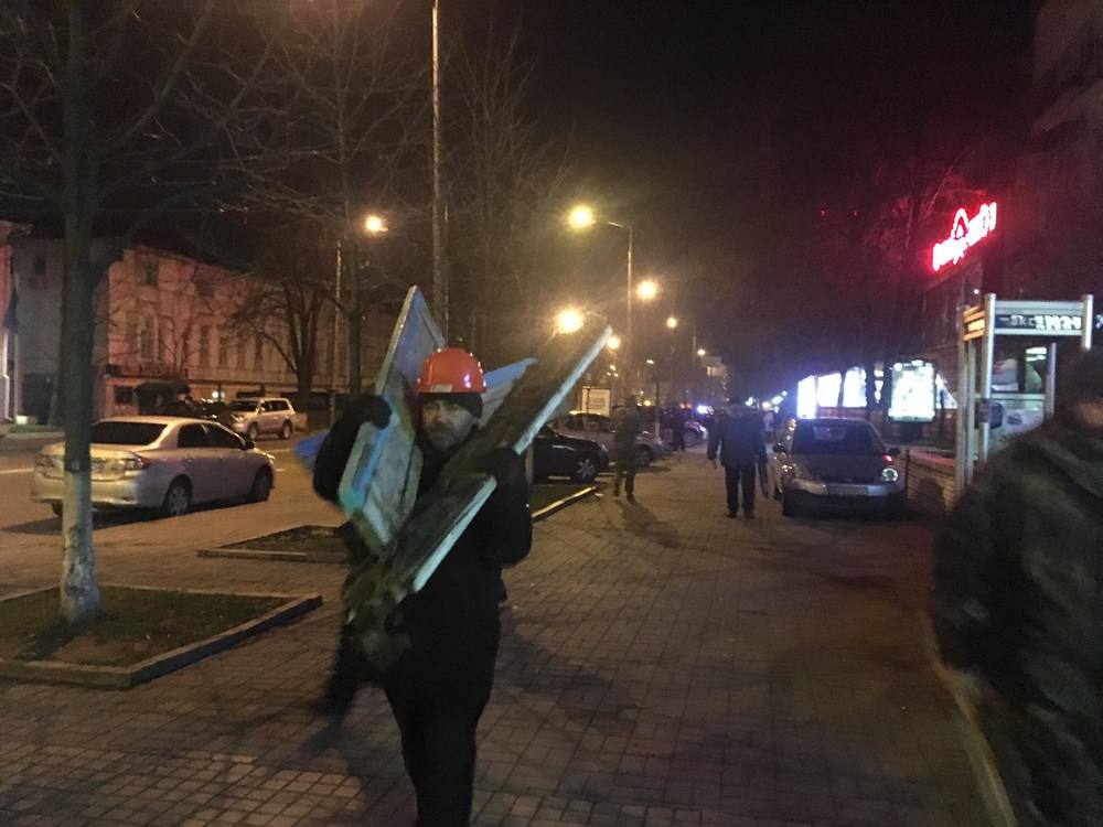 Маленькую палатку с шинами полицейские отодвинули, шины оказались разбросаны. Ранним утром полицейские не позволили активистам установить палатку на выезде из ИВС. Также сообщается, что улица Мазепы перекрыта.