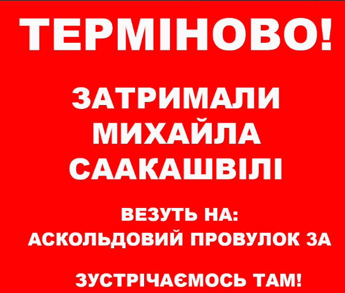 23.10 - На странице Саакашвили в соцсети Facebook  после его ареста появился призыв к его сторонникам прийти на Аскольдовый переулок, 3а.