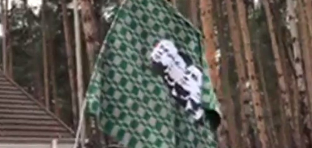 Этот флаг олицетворяет коррупцию в украинской власти. А его цвет происходит от одеяла, в которое кутался отстраненный глаа ГФС Насиров во время судебных заседаний.
