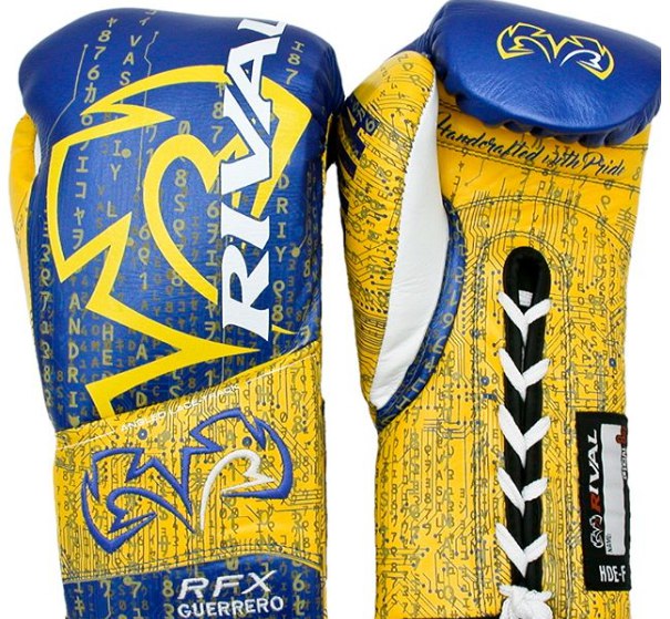 Украинский боксер Василий Ломаченко, который утром 10 декабря проведет титульный бой с обладателем чемпионского пояса по версии WBA во втором легчайшем весе кубинцем Гильермо Ригондо, выйдет на ринг в сине-желтых перчатках со своим именем. Об этом сообщает "24 канал".