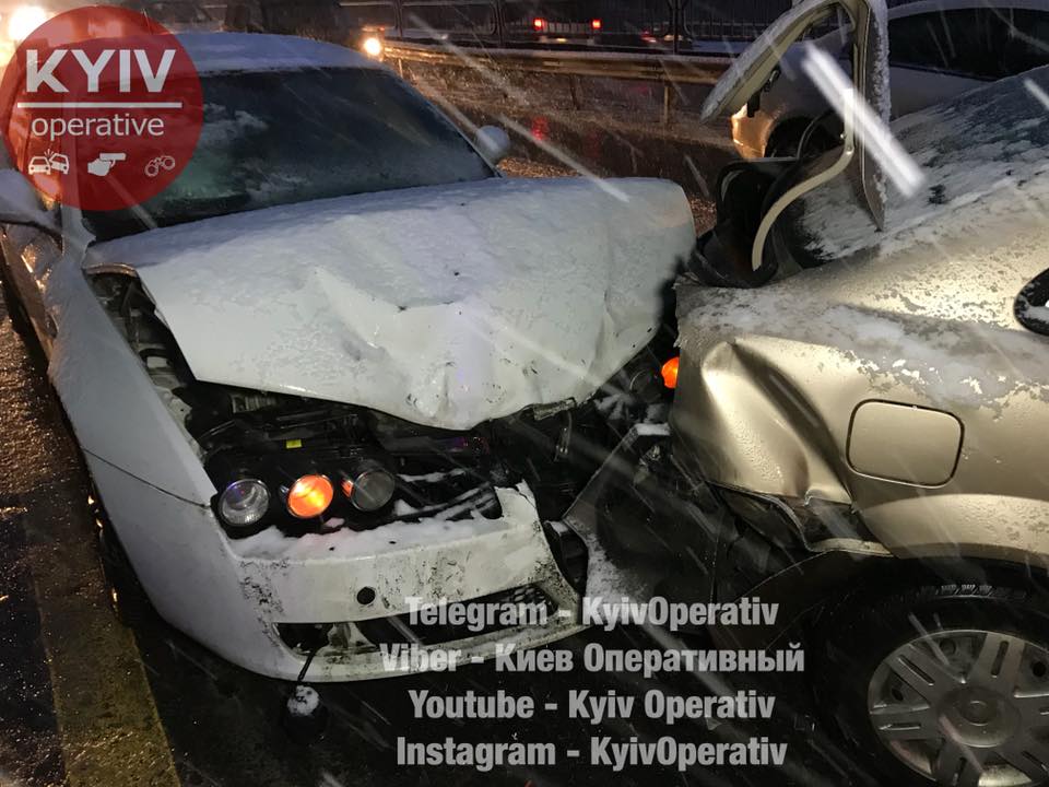 Тройная авария и сильный снег парализовали движение на Елены Телиги в Киеве