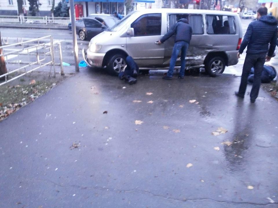 По предварительным данным, микроавтобус столкнулся с легковушкой. От удара микроавтобус отбросило на тротуар перед пешеходным переходом, где стояли люди. На месте сейчас работает полиция.