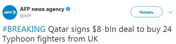 Еще отметим, что США продали Катару истребителей на $12 миллиардов.