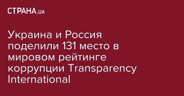 Украина и Россия занимают 131 место в рейтинге уровня коррупции Transparency International среди 176 стран. Об этом сообщает УНН.