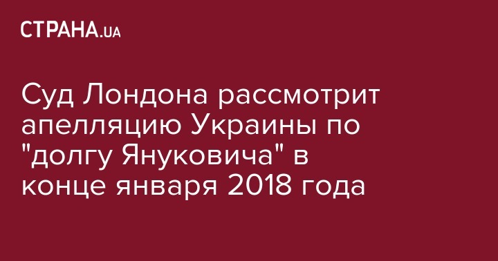 Суд Лондона рассмотрит апелляцию Украины по "долгу Януковича" в конце января 2018 года