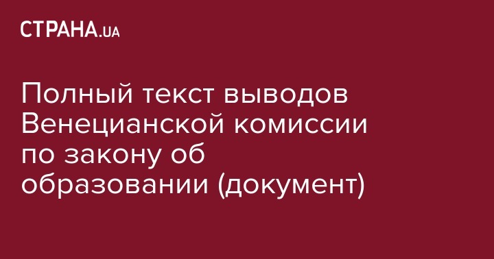 Также "Венецианская комиссия" требует изменить закон об образовании из-за русского языка.