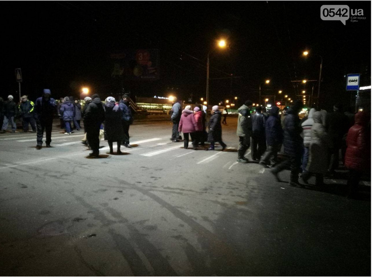 Вчера вечером протестующие перекрыли дорогу в районе "Эпицентра". Они переходили по пешеходному переходу, не давая транспорту проехать. Сумчане обещают продолжать протест до тех пор, пока в дома не вернут подачу газа.