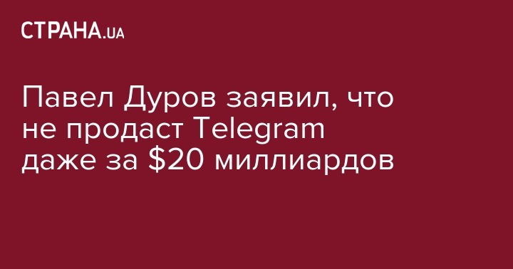Павел Дуров заявил, что не продаст Telegram даже за $20 миллиардов