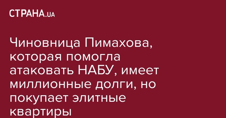 Чиновница Пимахова, которая помогла атаковать НАБУ, имеет миллионные долги, но покупает элитные квартиры