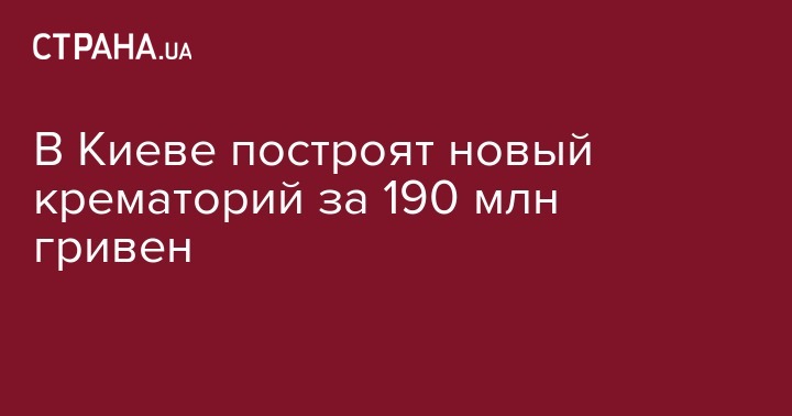 В Киеве собираются построить новый крематорий к 2024 году. Об этом сообщают "Украинские новости" со ссылкой на проект программы социально-экономического развития Киева на 2018-2020 годы.